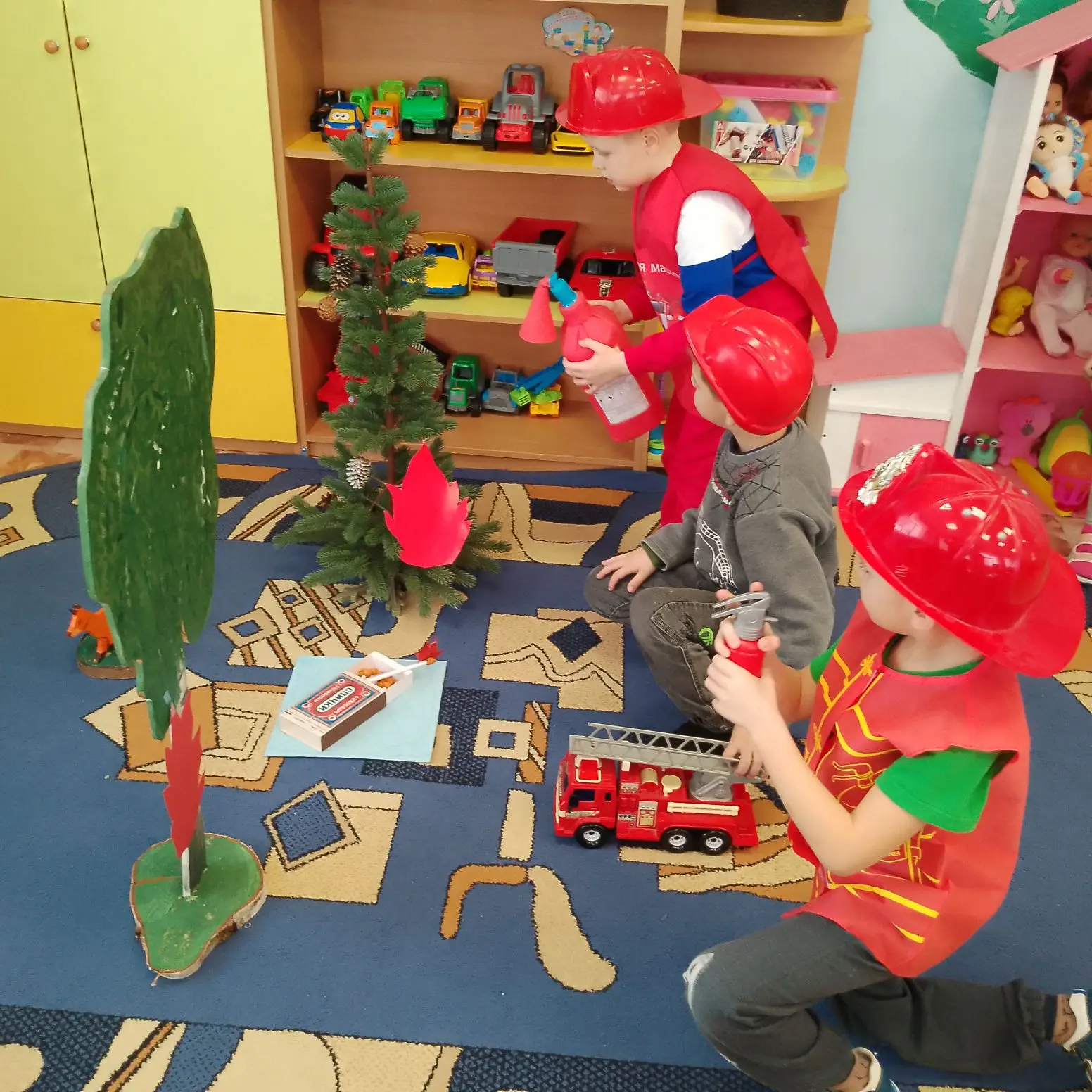В течение дня были организованы сюжетно-ролевые игры «Юные пожарные», «Служба спасения», «Пожар в лесу»; «Мы пожарные»; «Тушим пожар в квартире»; «Пожарные спасают животных в зоопарке»; «Пожарные на учении».